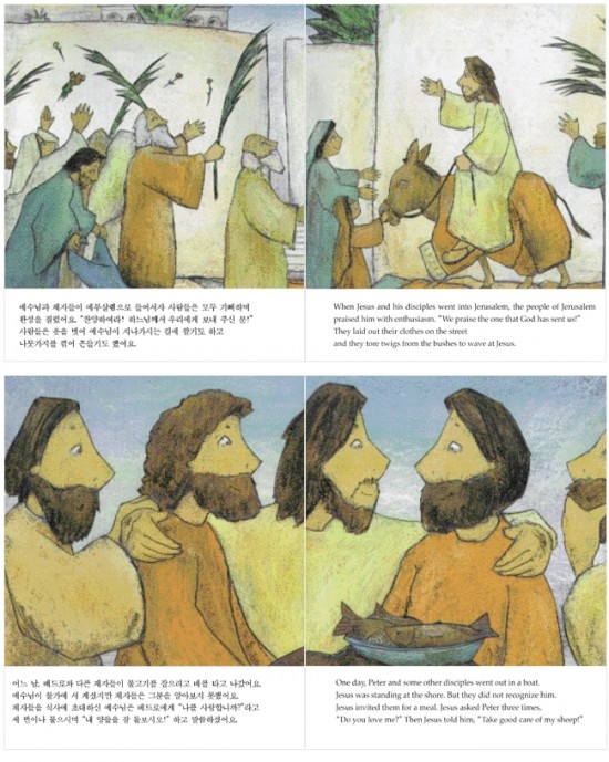 이 책은 바로 그런 우리 아이들의 해맑은 기억 속에 아무리 오랜 세월이 흘렀어도 변함 없는 향기를 지니고 있는 성서 속 예수님의 사랑 이야기를 들려주고자 기획되었다. 이 책 안에는 성서의 한글 부분과 함께 영어도 실려 있어 교육에 관심이 많은 부모들의 마음을 한껏 충족시켜 줄 뿐 아니라, 아이들에게는 자연스럽게 영어 성서의 나라로 안내해 줄 것이다.