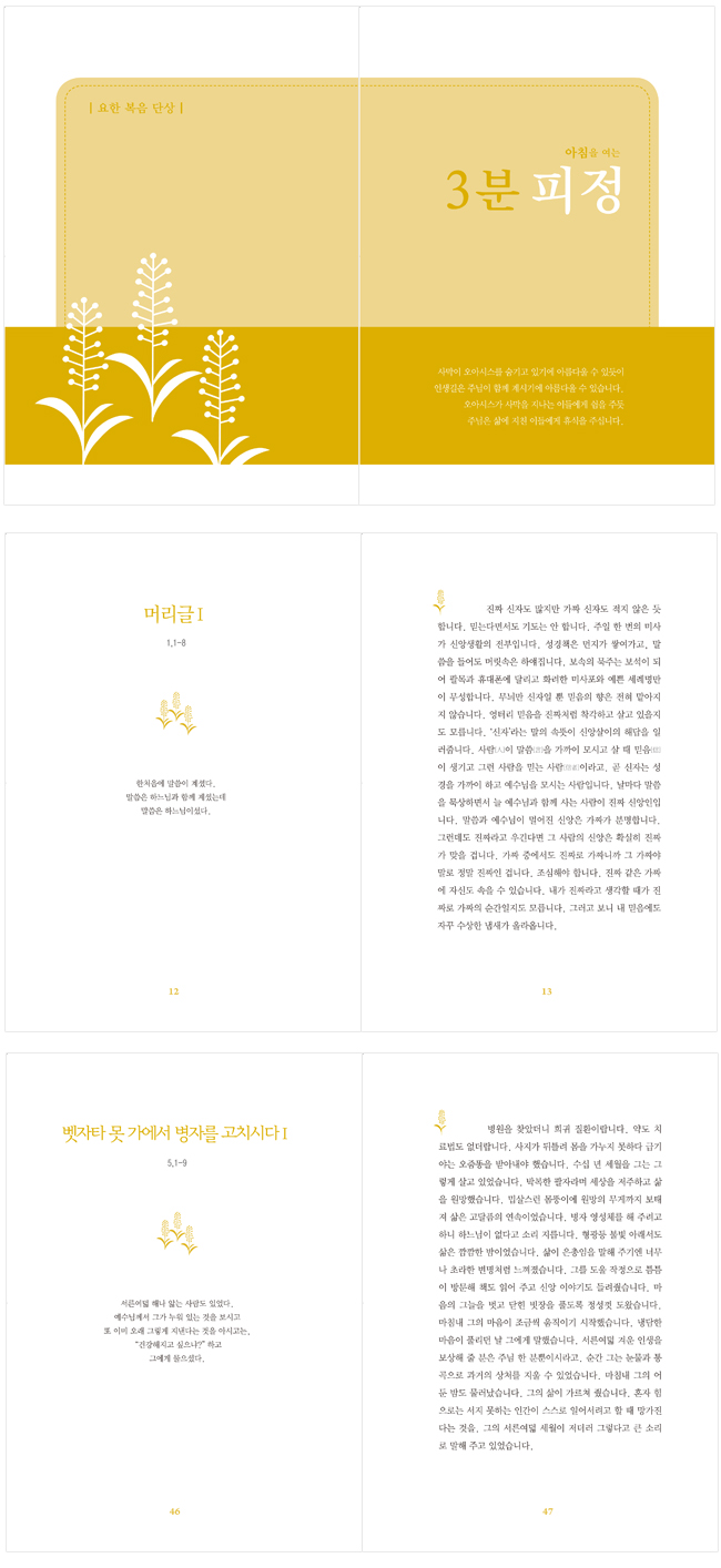 『아침을 여는 3분 피정-요한 복음 단상』에는 하느님 앞에 늘 부족하고 모자라다고 여기는 한 사제가 삶의 현장에서 길어 올린 아주 솔직한 이야기들이 담겨 있습니다.