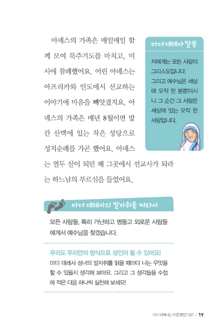 - 19쪽, ‘02 마더 데레사는 어떤 분인가요?’의 ‘마더 데레사 말씀’
