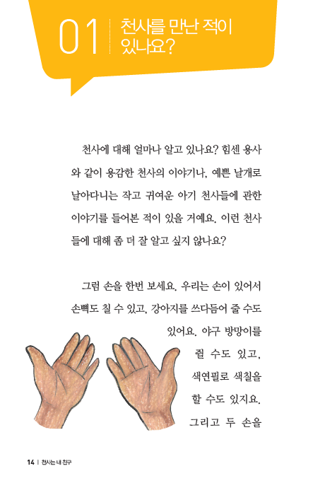 ‘천사’라는 말을 들으면, 많은 사람들은 눈부시게 아름다운 외모에 크고 흰 날개를 가진 상상 속의 존재 혹은 상징적 존재일 뿐이라고 생각한다. 성경에 천사에 관한 언급이 있고 천사에 대한 교리도 있지만, 오늘날 천사는 사람들의 관심 밖의 존재가 되었다. 그러다보니 정작 천사에 대해 정확하게 알고 설명할 수 있는 어른들도 많지 않다. 이러한 상황에서 과연 우리의 신앙을 전수해 주어야 할 다음 세대의 꿈나무들에게 어떻게 천사에 대해 알려줄 수 있을까? 특히 IT기술과 인터넷의 발달로 많은 정보에 노출되는 오늘날의 어린이들에게는 영적인 존재에 대한 이해가 왜곡되거나 잘못된 정보를 접하여 알고 있을 수도 있다. 생활성서사에서 출간한 『천사는 내 친구』가 이런 문제들에 좋은 해답이 될 것이다.