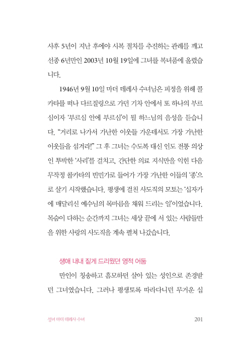 · 성모님의 발밑에서 성녀 마더 데레사 수녀 200