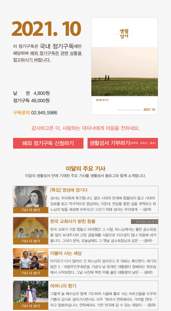 매달 받아보는 『생활성서』는 정성과 사랑이